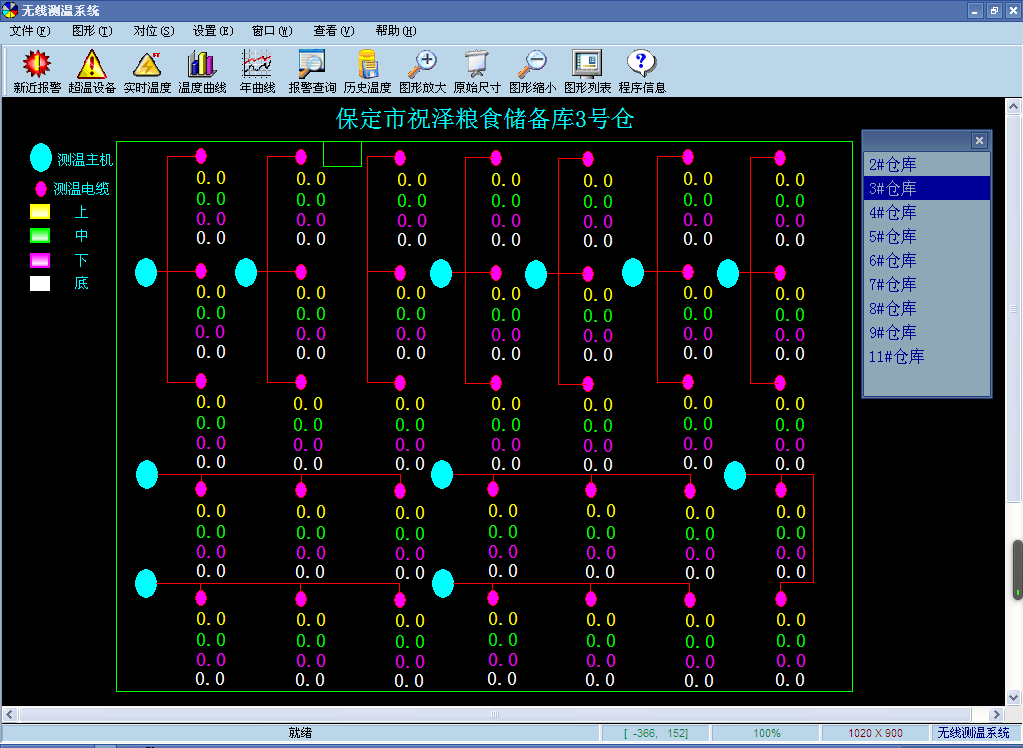 糧庫(kù)管理的之一就是要合理布置測(cè)溫點(diǎn),經(jīng)常檢查溫度變化,以便及時(shí)發(fā)現(xiàn)糧食的發(fā)熱點(diǎn),減少糧食的損失。然而,糧堆的熱傳遞又是非常緩慢,使人感知極差,需要管理人員經(jīng)常進(jìn)入悶熱、嗆人的倉(cāng)房?jī)?nèi)觀察溫濕度,不斷進(jìn)行翻倉(cāng)、通風(fēng),這種繁重的體力勞動(dòng),不緊對(duì)人體有極大的傷害,而且不科學(xué)、不及時(shí)。所以,糧食蟲(chóng)蛀、霉變的情況時(shí)有發(fā)生。